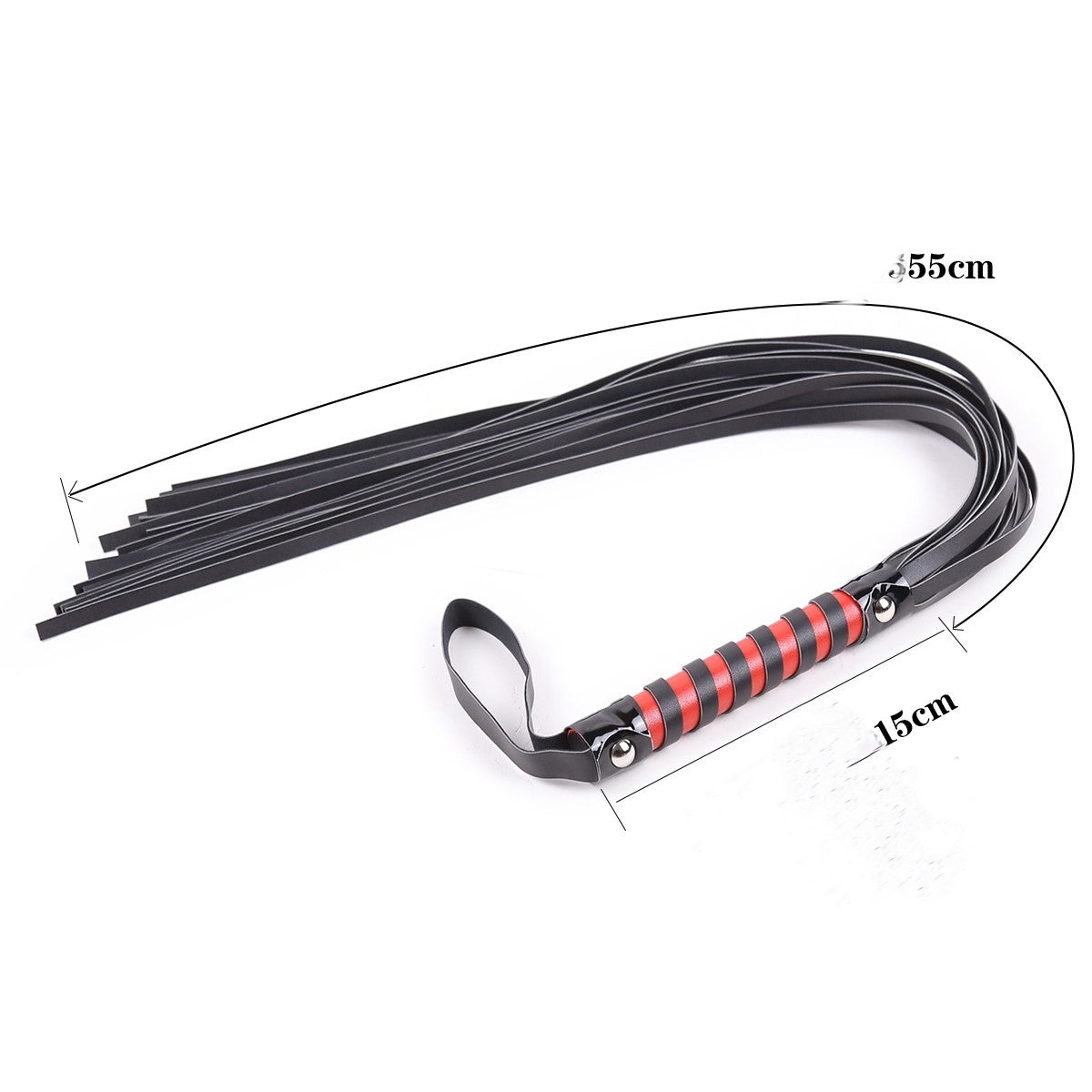 Stell dir vor, wie dieser Flogger in klassischem Schwarz sanft oder fest auf die Haut trifft und eine Atmosphäre der spielerischen Bestrafung und Hingabe schafft. Mit einer Gesamtlänge von ca. 70 cm ist er ideal dimensioniert, um eine vielseitige und angenehme Erfahrung zu bieten, perfekt für Einsteiger oder für diejenigen, die ein leichteres, handlicheres Werkzeug bevorzugen.